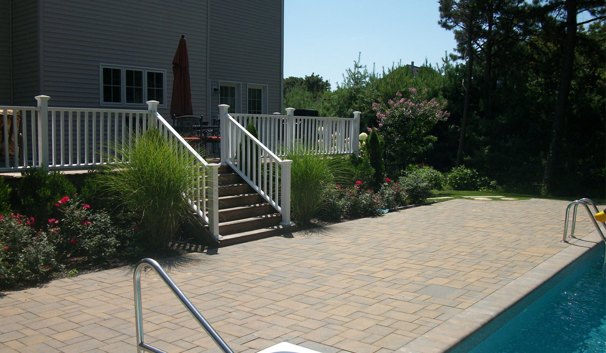 Pool Patio constructed with Pavers alongside Planting Area inbetween Deck and Patio